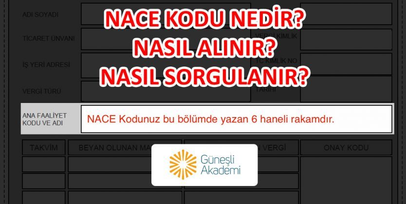 İşletmenin faaliyet kodu olarak ifade edilebilen NACE kodu; 6 haneli ve işyerinin yaptığı işin tanımlanıp sınıflandırılmasını sağlayan bir koddur. NACE kodu şirket kuruluşunda belirlenir ve şirket sözleşmesi ile bu kod arasında uyum olmalıdır.